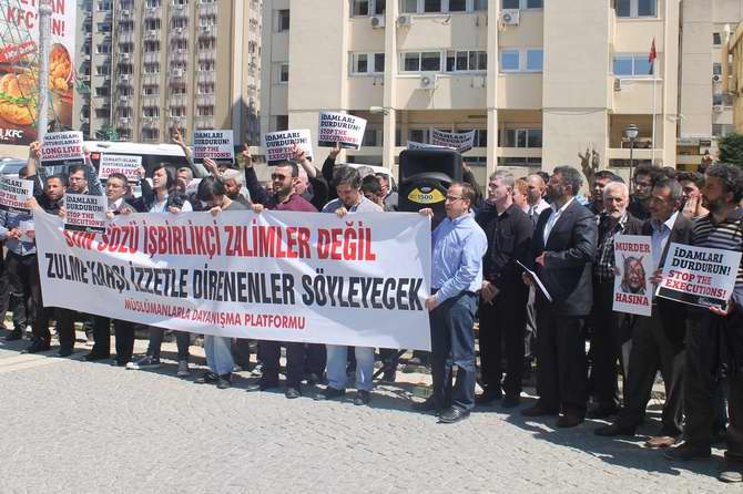 Basın açıklaması okunan duayla son buldu. İzmir Müslümanlarla Dayanışma Platformu, Mustazaflar Cemiyeti, Özgür-Der, Özgün-Der gibi İslami kuruluşlardan oluşuyor.